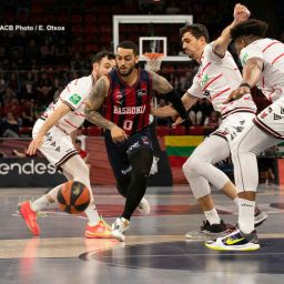 Ferrán Martínez, el jugador sobrepasado por la dureza física en los tres encuentros previos, se erige paradójicamente como el salvador azulgrana. 20 puntos con 8 de 9 en tiros de campo y, a falta de 05:23 para el final, vuelve a dar una diferencia casi decisiva, anotando el 56-66. Dos triples consecutivos de Manel Bosch y Sergei Babkov, dan un pequeño hilo de esperanza local: 66-71, a falta de 03:25.