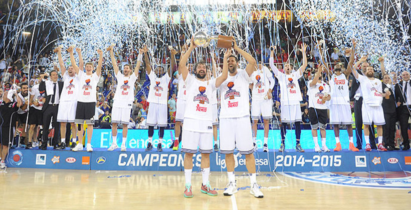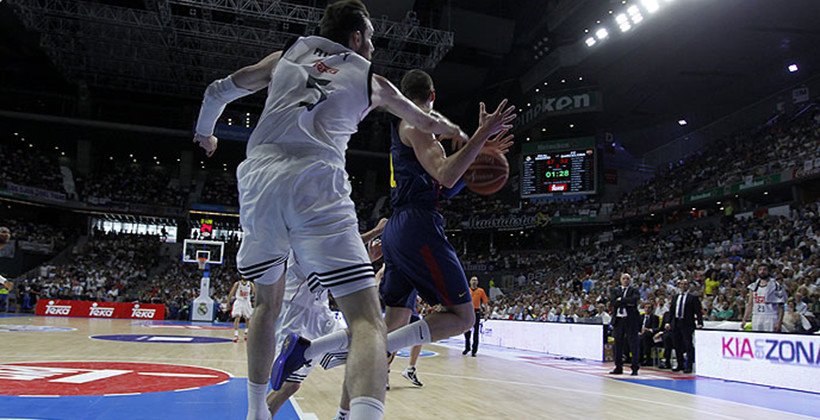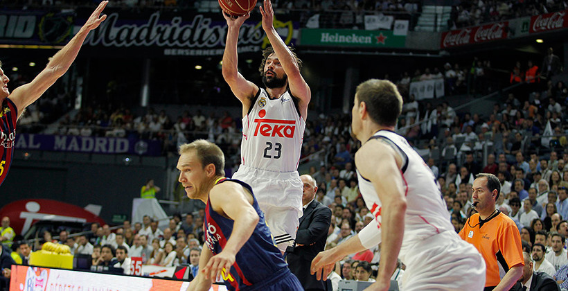 Final Liga Endesa 14/15: 2º Real Madrid 100-80 F.C Barcelona Sergio Llull tenía el balón mientras miraba a sus compañeros…